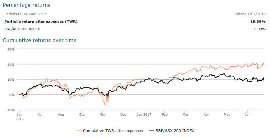 Please note, and we do stress this, that past performance is not a reliable indicator of future performance & importantly, each portfolio is managed individually and returns will vary between portfolios. This particular portfolio holds equities and also sells options to generate additional income. The returns are after fees. Fees are dependent on the amount of money invested. For more information on minimum investments, applicable fees and the nuts and bolts of the service, please get in touch.