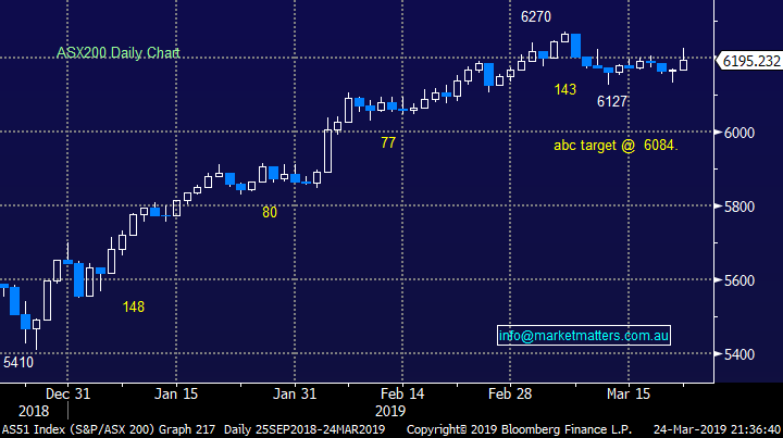 MM remains in “ buy mode” primarily due to our elevated cash levels and we will be relishing any short-term correction – our initial target is below 6100, or 1.5% lower.