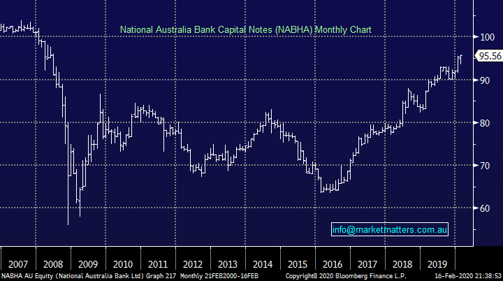 A very valid theory, they are both structured in the same way, both losing tier 1 status progressively over time. While it was always a theory that NAB would redeem this, the fact MQG have actually pressed the button on doing it adds to the strength of that call. The return profile on the NABHA will now very much depend on when they do redeem them, if its soon, the return looks good from current prices, if they leave them out there for a few more years, then it’s not as good.