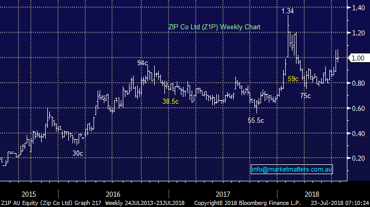 "Hi James, twice this year, in January and June, you highlighted Z1P as a possible buy. Fortunately, I acted in both times and in January purchased Z1P at 0.85 then sold at $1.24. In June I bought at 82c and the current trades are now above $1. Can I have your opinion on an exit price? A few weeks ago, you became somewhat negative on these types of stocks so I have my finger on the trigger but find often sell way too early and not let the good ones run enough.” – Thanks Charles S.