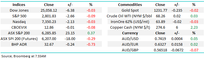 The ASX200 is set to open down over 20-points on Monday with no major leads from overseas except a 0.5c jump in the $A and BHP closing down ~20c in the US – we won’t be surprised if a few fund managers are considering lightening their exposure to the $US earners following Trumps attack on China and the EU, this time focusing on currency manipulation – we did on Friday by taking profit on our $US ETF.