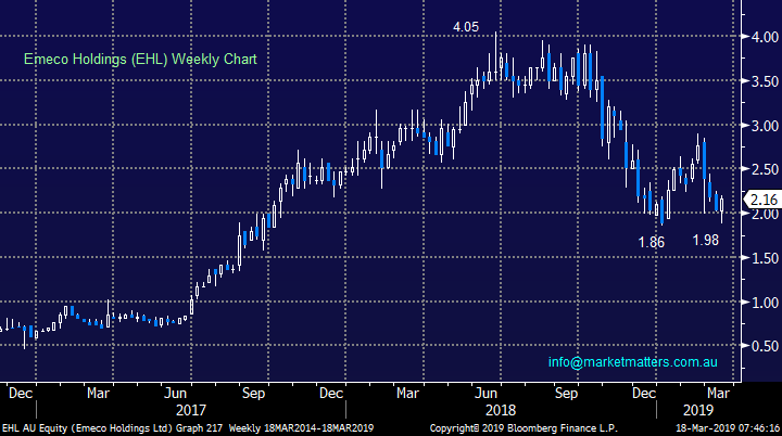 A quick reiteration of comments in the weekend report around Emeco (EHL) which we attempted to buy on Friday before it soared of 6% without us onboard!