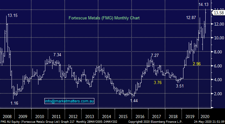 GMG as is often the case with quality companies rarely gives optimum buying opportunities – the buyers are lined up for weakness. We think the stock is an ideal candidate to simply accumulate on the backfoot because its likely to hold up well, while our ideal area is around $13.50, sub $14 will catch our attention, or 4-5% lower.
