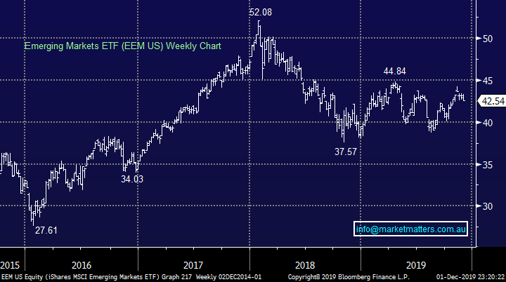 The ASX200 made new all-time highs on Friday morning before drifting lower throughout the day courtesy of the antagonistic actions of the US and President Trump towards China as they supported the protestors in Hong Kong – poor timing considering markets are expecting a “trade war” resolution at least of sorts this month. Not surprisingly we still believe the old British colony is the obvious canary in the coalmine for equities into 2020.