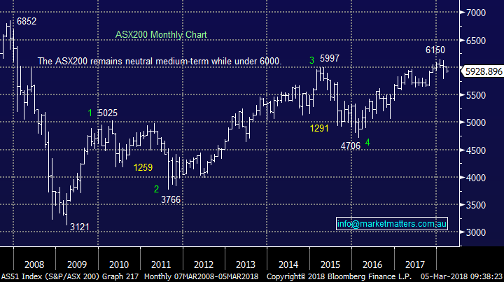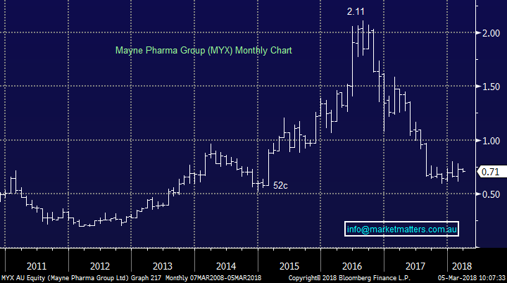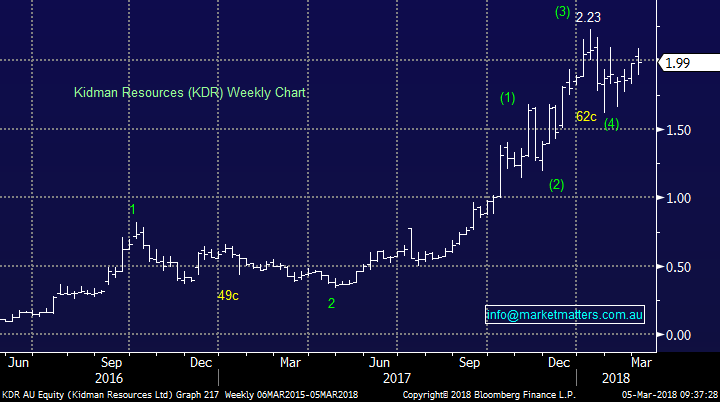 Fortunately, our position in KDR fared better closing up 1c at $1.99. At this stage we simply intend to follow our original plan with our KDR holding which is to take profit around $2.25-$2.30. The stock has rallied from ~50c in mid-2017 and there is now a lot of optimism built into the share price, although at MM we believe it’s well founded.