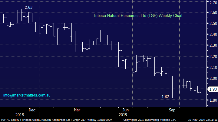 Tribeca Natural Resources Ltd (TGF) is a fund that invest in direct commodities, debt and equity, and their performance has clearly been weak. Shaw was involved in this listing and I had dinner with the guys who were running it. A smart team however I believe there has been some turnover of staff within Tribeca of late.