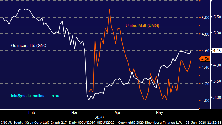 “Hi James & the M. M. Team. Previously you’ve recommended GrainCorp (GNC) prior to the divestment of United Malt Group (UMG), it’s performance has been disappointing. What are your current thoughts on both companies for the short & medium terms. To Err is to be human, to be Smart is to subscribe to Market Matters!! Keep up the excellent Stock Market insights for a happy subscriber.” - Cheers, Martin B.