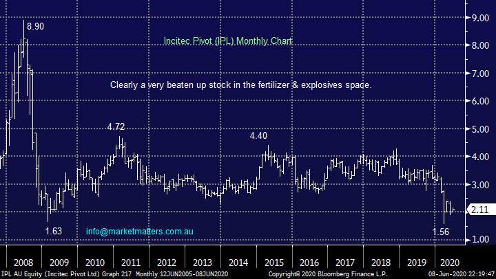 Explosives and chemicals business IPL are raising up to $75m through an SPP at $2 after successfully raising $600m in an institutional raise to strengthen its balance sheet, not particularly attractive in our opinion.