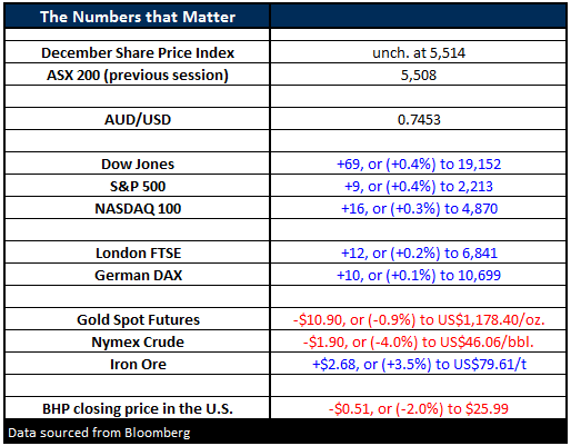 - The Dow rallied 69 points higher (+0.4%) to 19,152, while the S&P 500 closed 9 points higher (+0.4%) at 2,213.