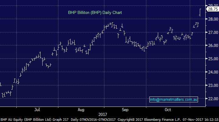 Yesterday’s strength in our stocks really felt like some forced buying of the overall market was present along with the obvious impressive gains within the resources space e.g. BHP +3.9% and Fortescue (FMG) +4.8% - however it must be noted that lows volumes typically exacerbate the falls