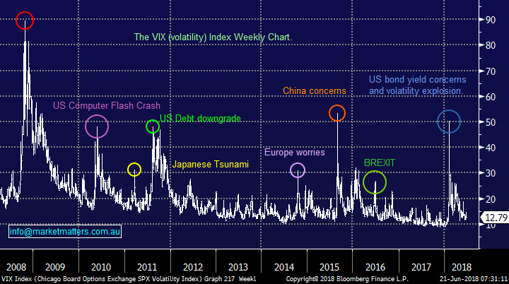 Overnight stocks were pretty quiet with the only thing catching our eye the Volatility Index (VIX), often referred to as the fear gauge, slipping back below 13% closing down over 4% on the night – we believe there’s a very strong possibility this will kick back above 20% at some stage in 2018.
