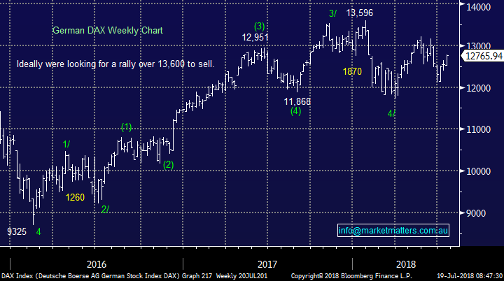 · Short-term MM is neutral the ASX200 with a close below 6140 required to switch us to a more bearish stance, however we remain in “sell but patient mode”.