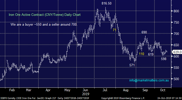 Copper is often referred to as “Dr Copper” and is regarded as an excellent barometer of global economic strength / activity. Just on cue for today’s report copper rallied nicely overnight to approach its 12-week high, technically our initial target is over 5% higher. Copper and other industrial metals have been supressed under the cloud of US – China trade worries but as the midst slowly lifts and the $US wobbles, at the very least, the path of least resistance now feels on the upside.