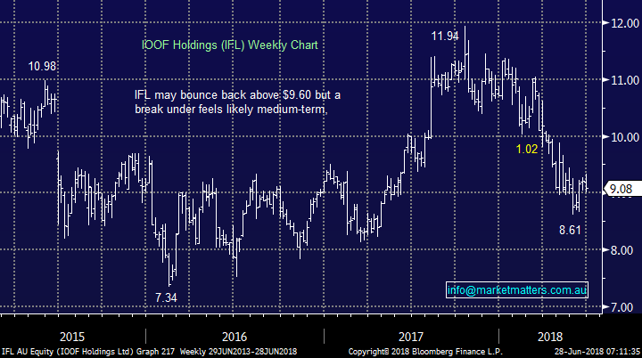 Yesterday MM sold our position in IOOF Holdings (IFL) deciding to follow the path of cutting our least favourite position into EOFY, unfortunately realising a loss of ~12% in the process.