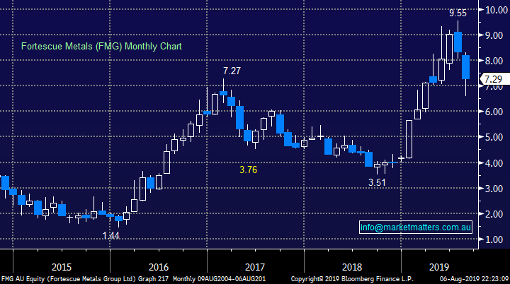 The ASX200 was smashed another 162-points / 2.44% yesterday as relentless selling rolled through our market, the SPI futures volume was well over the double the average of 2019 with 91% of stock’s closing in the red, clearly a tough day at the office. The escalation of US – China trade concerns has sent the local market down over 400 -points / 6.2% in rapid fashion, just the last 2-days alone has seen almost $100bn wiped from the markets value, some previously complacent investors must be feeling very different this morning. To put things in perspective this week has already wiped out close to 10-weeks of gains – importantly to MM this is an exciting time, not one to panic and run to the hills – figuratively speaking. (Harry and I do leave for the Flinders Ranges today – more on that below).