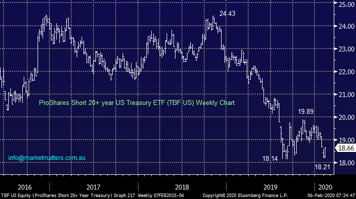 Importantly to reaffirm MM’s view moving forward : we believe that 2020 will continue to be a choppy year as waves of optimism and pessimism are likely to wash through stocks, no great surprise considering the markets record breaking post GFC advance and elevated valuations that make it relatively easy for investors to sell stocks on the sniff of a pullback. Our current best guess is the ASX200 will make fresh all-time highs in Q1 up towards 7200 before enduring another ~5% correction, perhaps this time on bond yield concerns – we plan to tweak our portfolios accordingly e.g. currently we have a very low cash position after buying the coronavirus panic sell-off on Monday hence it’s what / where to sell which we are now focused on.