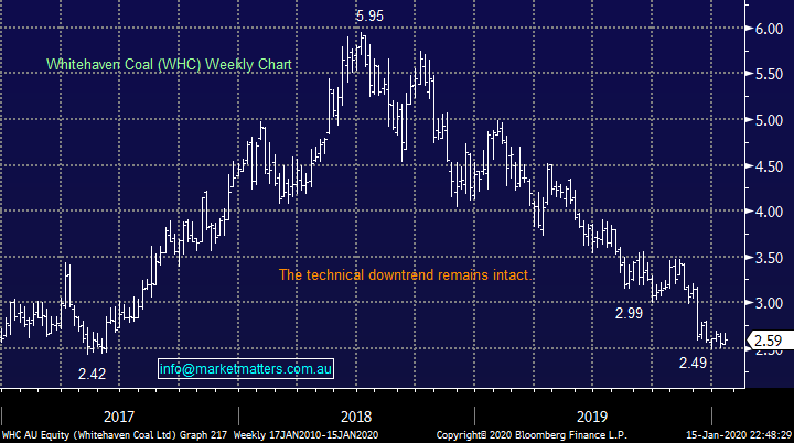 The style of announcement like Blackrock’s often creates a swing low in a stock / sector but in this case, we must recognise the strong possibility that this is the beginning of the end for coal. However, for those subscribers keen on the sector we would point out that the worm appears to have turned for the underlying commodity price since late 2019 which would usually imply the respective stocks would follow but in this case it feels all too hard to MM.