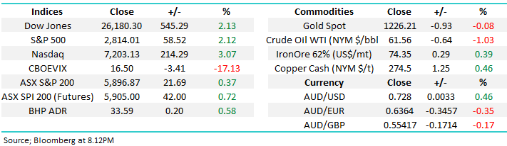 Overnight US / Europe markets were strong as a relief rally gained momentum throughout the session, Dow up 545-points while the SPI futures were pointing to a open for the ASX200 up around 30-points / 0.5% - remember we saw a decent portion of the US gains overnight in their futures market during out time zone yesterday.