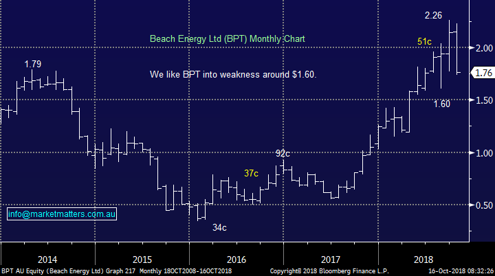 Technically we are keen buyers around $3.25 but the buyback news may make this level too optimistic. Even after the recent 10% bounce its yielding 5.9% fully franked. We up weighted FMG in the Income Portfolio last week.