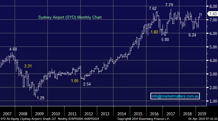 Sydney Airports (SYD) has been a huge benefactor of lower interest rates post the GFC – SYD still yields over 5% unfranked hence no impact from a likely Labor victory in May.