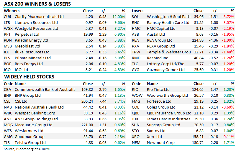 Broker Moves; IOOF was downgraded today by UBS with a neutral rating while they also slapped a sell on AMP. The Bank effectively saying that the sector will take a long time to recover from the Royal Commission – 2 to 3 years before some semblance of stability returns. Elsewhere, Macquarie are saying that the Santos bid from Harbour has an 80% chance of getting across the line despite FIRB concerns…the stock hit a high of $6.24 today – we originally suggested that if we held, a SELL above $6.20 makes sense even though the bid is at $6.50 given the chance the deal may stumble – Gas is a political issue at the moment…