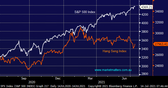 US S&P500 Index v Hong Kong’s Hang Seng Index