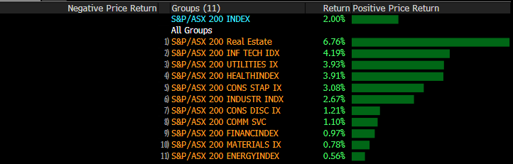 There was very little news for to keep investors interested, and given the light volumes during school holidays and Friday in general, once the market picked a direction there was little resistance to the momentum. As a result, the ASX200 is now only 100pts away from the all-time high at 6851. That is just 1.48% higher.