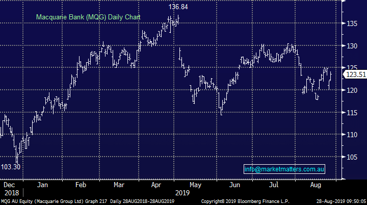 Macquarie (MQG) $123.51 as at 28/08/2019