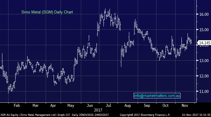 Sims Metals Daily Chart -2 million Sims Metals shares at $14.13, worth $28.4 million, at 1.50pm