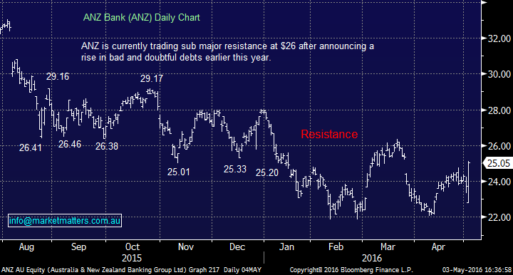 Yes, cash profit was a big miss but there was a $717m restructuring charge. The base now seems to have been re-set and the market liked it. Early weakness with the stock off around -4% only to be bid up and finished +5.56% - a MASSIVE turnaround. ANZ now trading at $25.05. We suggested to top up existing positons around $23 this morning as per MM alerts to subscribers