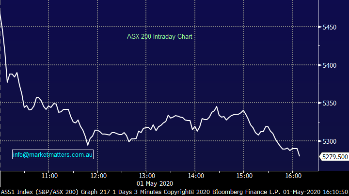 Overall, the ASX 200 closed down -276pts or -5.01% to 5245. Dow Futures are trading down -344pts/-1.42%.
