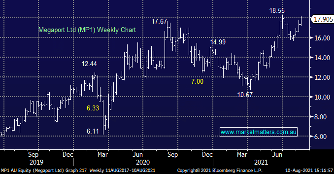 MP1 +3.11%: The Network as a Service (NaaS) provider had pre-reported top-line metrics however the details of the result was positive. Revenue of $78m was largely inline with consensus expectations while an after tax loss of $31.3m was a touch better than expected. The pro’s to the result included MP1 achieving EBITDA breakeven in June 21 as they had been targeting, strong growth in ports added + reoccurring revenue which all bode well for FY22. No guidance was provided. All in all, we like MP1 even though we recently sold out of the stock, more a portfolio decision that a reflection on the business.