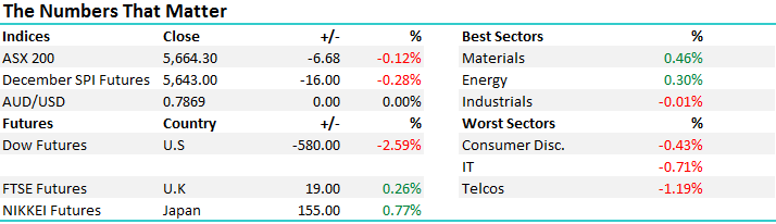 The local market yet again opened ok this morning only to encounter some selling but more noticeably a total lack of buying. Volume continues to be extremely low as local investors / fund managers and traders alike start looking forward to a long weekend, albeit with different days off! The ASX200 traded down as low as 5649, a mere 20-points above its 20-week low, a break down towards 5500 feels inevitable but we’ve thought that before! If we actually got a decent down night in the US it would really put the cat among the pigeons. Today the market had a range of +/- 23 points, a high of 5672, a low of 5649 and a close of 5664, down 6 points of -0.12%.