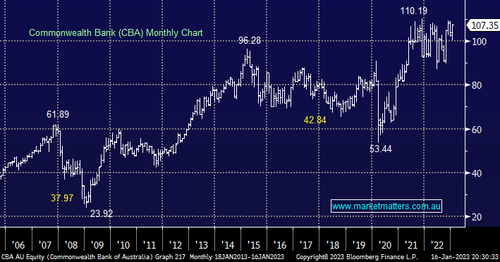 - We are still targeting fresh highs by CBA into February plus an appetizing dividend but we’re not overly bullish on the bank above $110.
