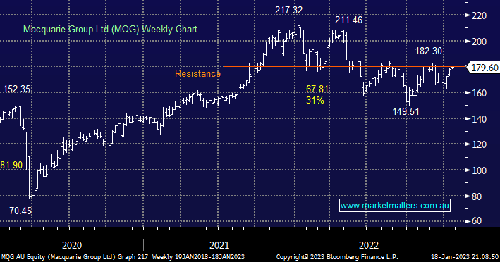 - We are encouraged by MQG’s strength yesterday and have an initial target of ~$190, or 6% above yesterday’s close.