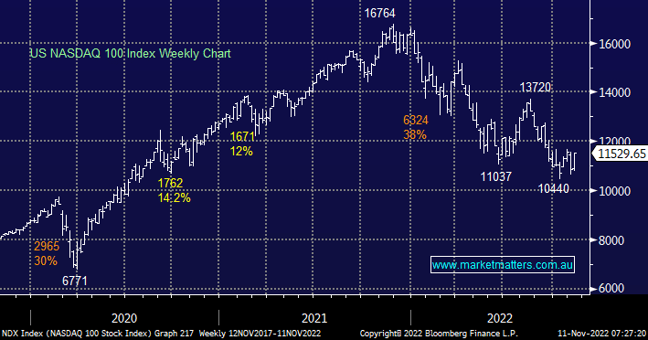 The markets are in a fascinating position with most parts of our roadmap unfolding nicely plus tech now looking likely to become the last piece of the puzzle i.e. we are bullish and looking for growth stocks to start leading the market higher after enduring a very tough year. However, it’s one thing to pick the market and even sectors correctly but if companies fail to deliver on earnings it can still be a frustrating journey as we’ve experienced over the last few weeks e.g. Xero (XRO) and Megaport (MP1).