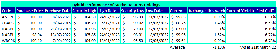 The table below looks at the performance dynamics of our held positions, aimed at providing some clear context and understanding of the moves we are witnessing. While these cover our held positions, they are indicative of major bank hybrids across the market.