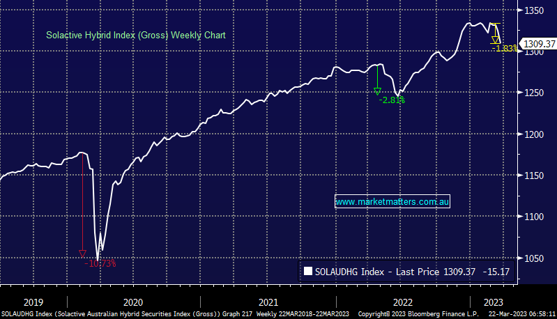 While hybrids are risker than cash and higher-ranking bonds, and there is always a higher element of risk in a security offering higher returns, we continue to believe the risk/reward dynamics across the hybrid securities of regulated Australian companies (banks & insurers) remain solid. We will remain vigilant as always, but we are not concerned with the implications of this week’s events overseas on our allocation to Hybrids in this portfolio.
