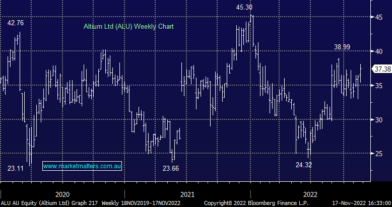ALU +2.38%: Held their AGM today and reconfirmed their FY23 guidance for revenue $255m to 265m, and still sees underlying EBITDA margin 35% to 37%. They talked to a solid first four months of fiscal 2023 year across the business with higher average revenue per user (ARPU) for PCB subscriptions as mainstream customers continue to adopt Pro-level platform capabilities in tandem with the growing uptake of Term-Based Licences. They went on to talk about their FY26 aspirational revenue target of $500m per annum, saying they now believe this will be achieved from a base of 75,000 to 90,000 subscriptions rather than 100,000 seats. A good update from a great company!