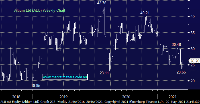 The second best performer yesterday was ALU, the electronic designer of automation software popped +6.6%. After falling over 40% since late 2020 the bargain hunters appear to have come out of hibernation as the Australian tech sector feels like it’s finally regaining its mojo. We had our eyes on ALU around $22 but we may have been a touch too optimistic. ALU will be the topic on next weeks Direct From The Desk Podcast with Analyst Jules Cooper.