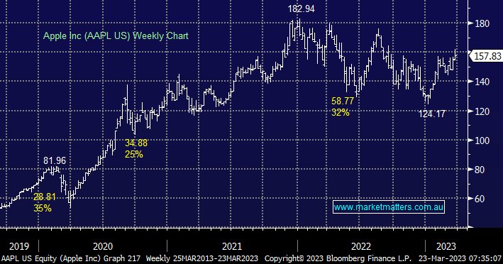 Apple is a great illustration of quality stocks/companies rising to the top post the GFC, this $US2.55 trillion business still looks on track to challenge its all-time high in the $US180 region. The household name continues to deliver and innovate even as the economic backdrop challenges most businesses on several fronts.