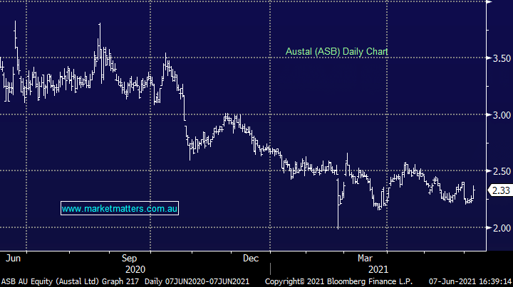 ASB +4.02%: We talked about shipbuilder Austal (ASB) last week flagging their move into steel ship production in the US and today we saw an incrementally positive update towards that end. While the contract is small ($3.6m of design work) it adds weight to our thesis that ASB will be supported by their largest customer in a transition towards a profitable steel manufacturing operation in Mobile Alabama. The facility is being equally funded by ASB and the US Government each investing $US50m. We own ASB in the Emerging Companies Portfolio, we’re down on the position but keen to add to it around current levels.