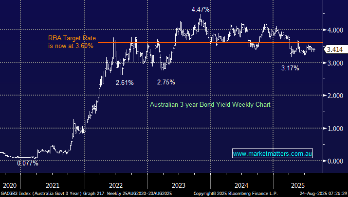The comments from Jerome Powell on Friday night were supportive of Australian bonds, ticking yields down towards their 2025 lows. Markets are pricing in one more easing before Christmas and another in 2026 taking yields down towards 3%, nothing unrealistic here in our opinion.