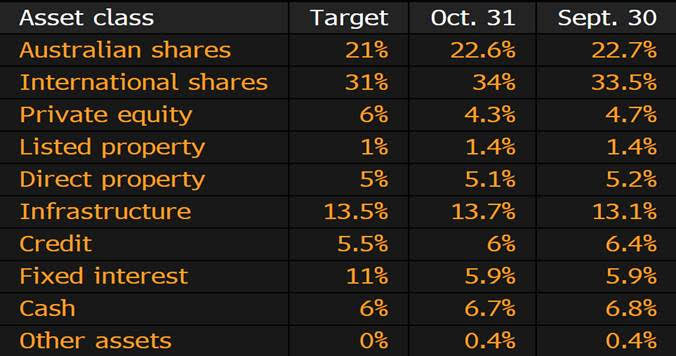 Always interesting to see how the large superfunds are positioning in terms of Asset Allocation over time. The below table looks at current asset allocation of the country’s biggest – Australian Super – and the slight tweaks they make month to month. From September to October they increased infrastructure and global stocks. Worth highlighting their very low exposure to fixed interest given inflationary expectations.