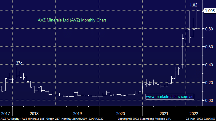 Another lithium stock AVZ was the markets 2nd best performer yesterday, with the alkali metal undoubtedly the best sector for outperformance on Tuesday with Allkem (AKE) and Pilbara (PLS) also in the leading pack. The markets reacted positively to the companies $75mn capital raise and commitment to $25mn investment into its drilling project in the Congo. This $3.5bn lithium developer has a huge deposit waiting to be utilised but the Congo has a very mixed track record hence as the companies yet to deliver a profit we feel the risks with AVZ are too high at today’s valuation i.e. we prefer other ASX lithium stocks.
