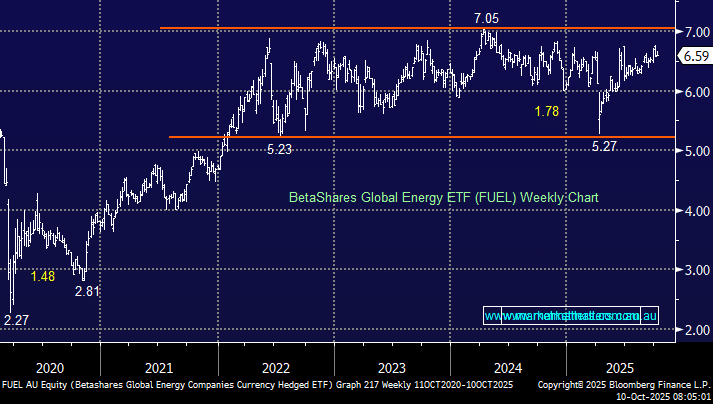 - We like the FUEL ETF for simple ASX-traded exposure to global energy; it’s outperformed the local index, and this is a year where the trend is your friend.