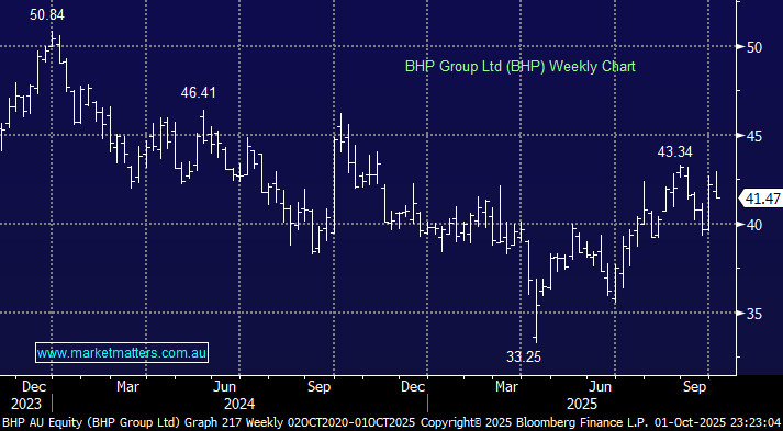 - We regard the current news around China and BHP as noise, and the “Big Australian” can still test the $45 area over the coming months.