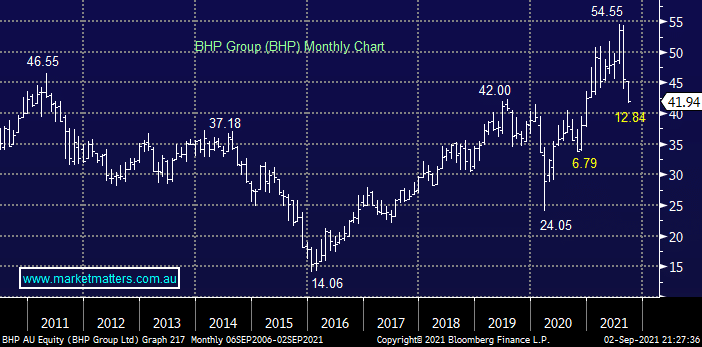 At MM we don’t agree and would be buyers of BHP if we had no existing exposure although sentiment may take a while to improve. We like the company’s direction plus allowing environmentally focused investors to exit petroleum while relieving BHP of the necessary huge investment schedule over the coming years feels a positive.