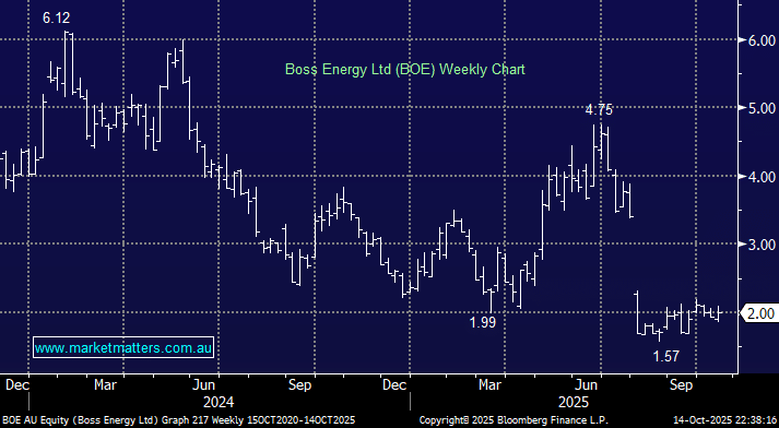 As we said, Boss Energy said it expects to complete the operational review started in July at its Honeymoon uranium project in South Australia by the December quarter. At MM, we believe the key question is how many additional wells will be required, and what the additional cost to get there will be. Investor confidence has been shattered by the poor communication to the market, but the question now is whether BOE has become a bargain or comparted to the likes of PDN.