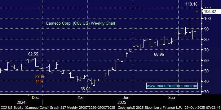 Uranium stocks surged higher overnight on the news that Westinghouse Electric (49% owned by CCJ) had secured a major contract with the US government to build new nuclear reactors. The $US80bn partnership signalled a new wave of renewed confidence in the nuclear sector – we never doubted it! Shares in CCJ powered ~24% higher on the news triggering a broader rally among nuclear companies – Paladin (PDN) and co should see renewed strong interest this morning. This ongoing overseas adoption must be starting to worry the huge short position across the local sector, which could even start to attract some M&A interest as they fail to embrace bullish overseas leads.